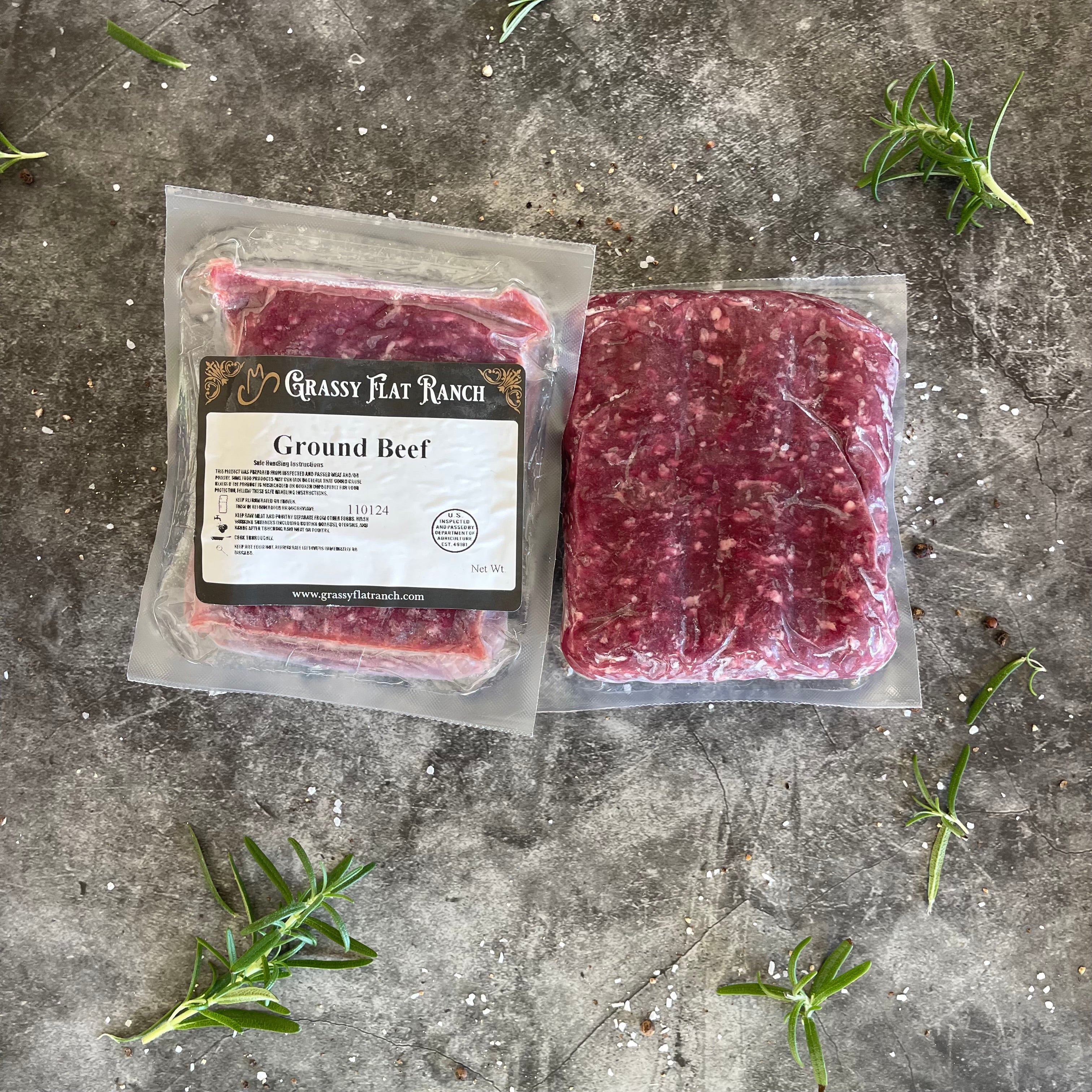 Taste the difference with our grass-finished dry aged ground beef! Our ground beef runs about 90% lean. All ground beef is packaged one pound per package. Packages are vacuum sealed and frozen solid.