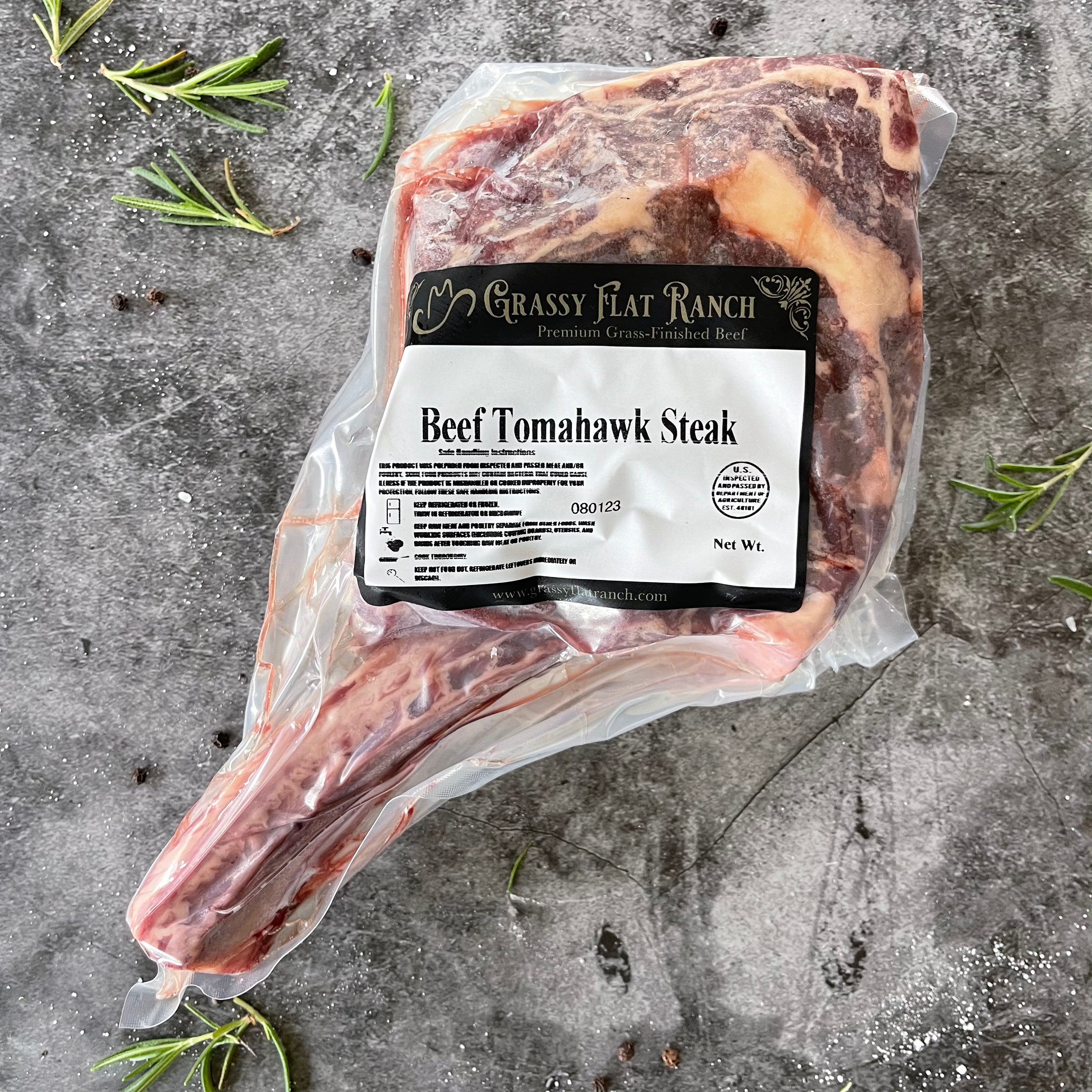Fire up the grill and enjoy this fun and unique cut of meat. The Tomahawk steak is a large ribeye with a caveman style bone. All meat is packaged by our local USDA butcher, vacuum sealed and frozen solid.*